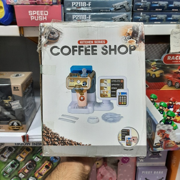 ست اسباب بازی کافی شاپ و دستگاه قهوه ساز کودک | بازی باریستا نقش آفرینی با کارتخوان
